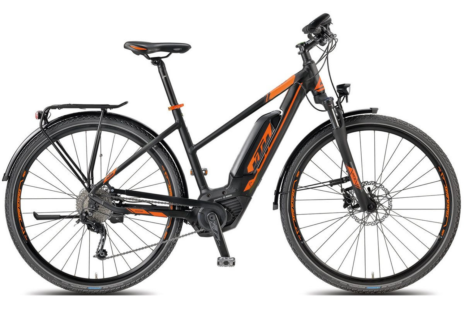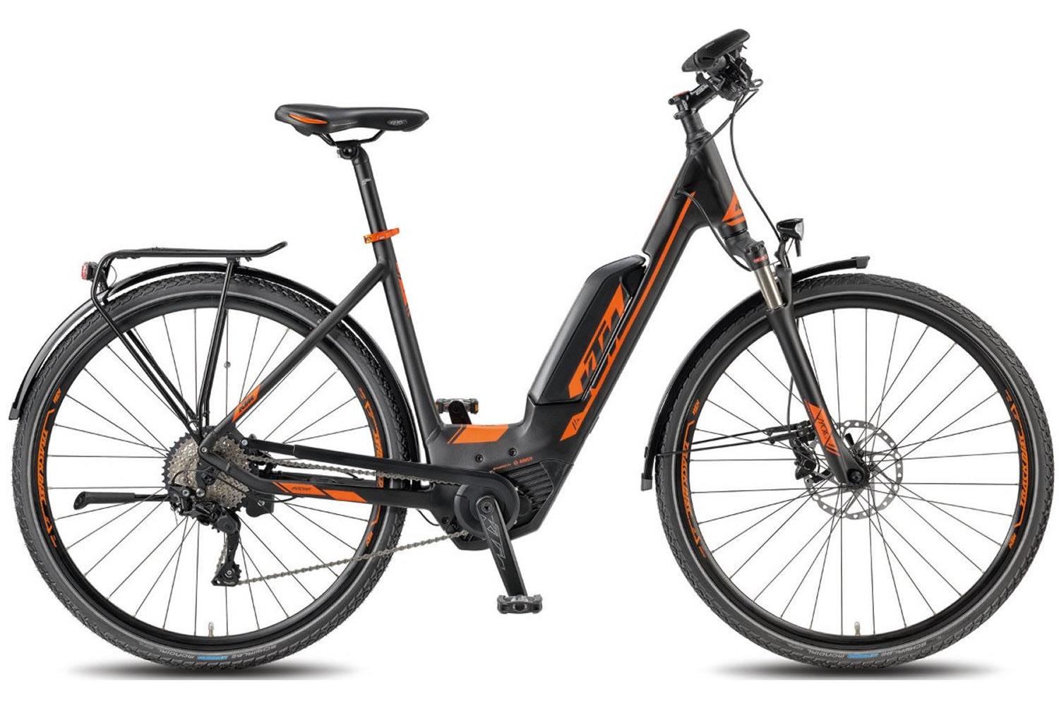 Radurlaube und ausgedehnte Touren sind die Stärken des KTM Macina Sport 10 CX5. Optisch wie technisch überzeugt das Macina Sport 10 auf der ganzen Linie. Im hochwertigen und leichten Aluminiumrahmen ist der Bosch Performance Line CX Antrieb elegant integriert und der 500Wh PowerPack liefert genügend Energie für lange Ausflugstouren. Zuverlässige Deore Komponenten stellen 10 Gänge zur Verfügung, welche das Shimano Deore Schaltwerk punktgenau zu schalten weiß. Die hydraulischen Scheibenbremsen stammen ebenfalls aus der Deore Gruppe von Shimano. Bremspower bei jeder Witterung ist hier selbstverständlich. Das rundum wertig bestückte KTM Macina Sport 10 CX5 ist ein perfektes Allround-Pedelec und macht auf langen Touren und im täglichen Pendlereinsatz eine top Figur.