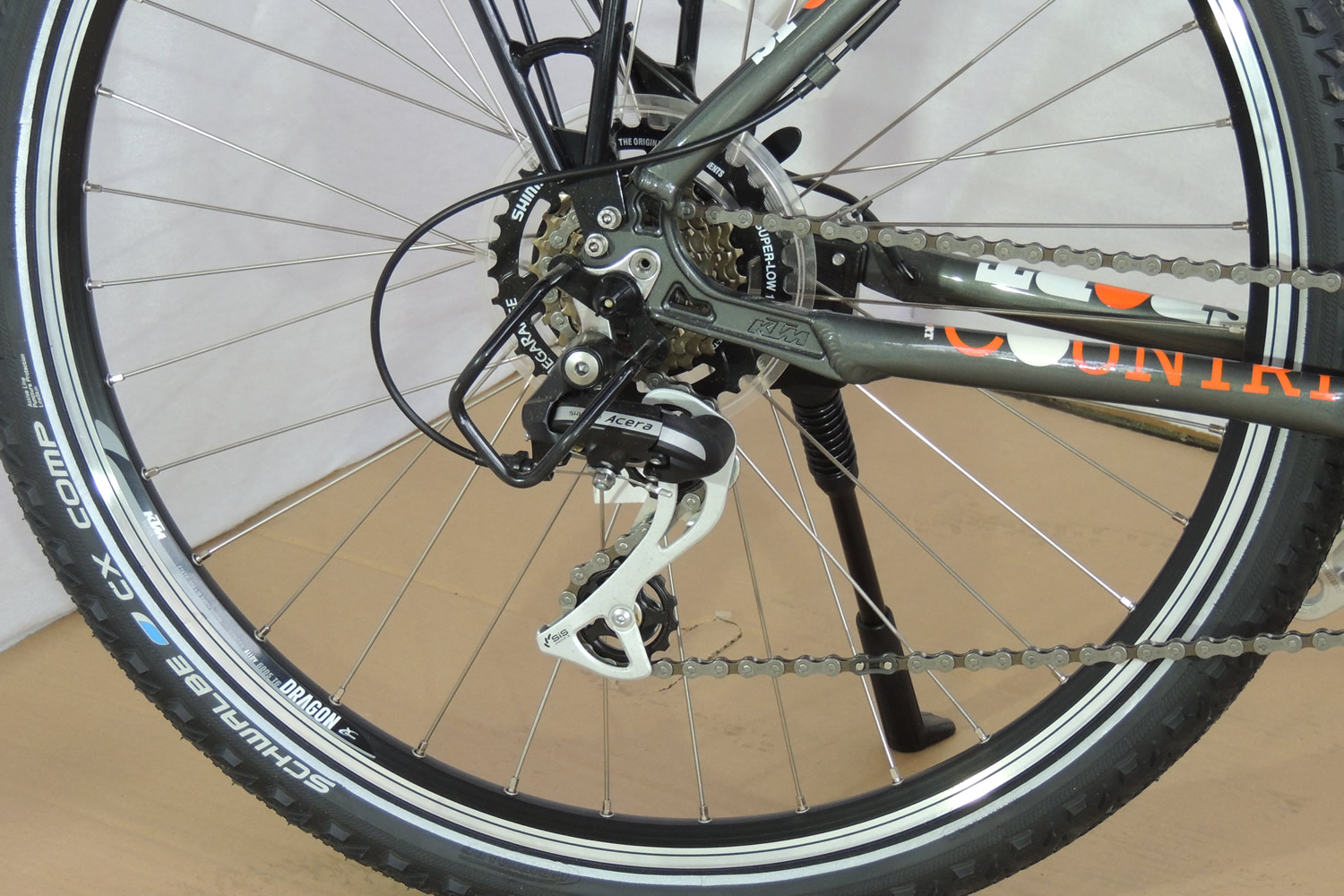 Das KTM Country Sport ist ein Jungendfahrrad für Kinder ab 13 Jahren. Es verfügt über griffige Felgenbremsen und einem hellen LED Scheinwerfer. Der robuste Alu-Rahmen mit geringem Gewicht verleiht dem Fahrrad die nötige Steifigkeit. Und mit der Shimano Altus M310 21-Gang Kettenschaltung schaltet Ihr Kind präzise durch die Gänge. Die neonfarbige Lackierung sorgt dafür, dass das Fahrrad hervorsticht und umwerfend aussieht.